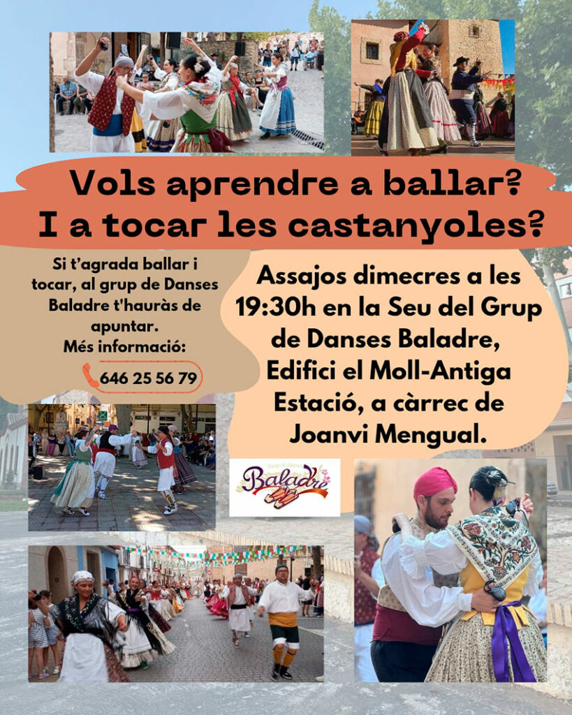 I seguim amb el cicle de tallers de ball de la Federació de Folklore de la Comunitat Valenciana, aquesta vegada serà a Muro entre altres pobles, on el Grup de Danses Baladre impartirà taller amb els balls més tradicionals del poble de Muro com ara: la Jota de Muro, Dansà de Muro, Fandango de Muro, Les d’Alacant i serà el dissabte dia 15 de febrer al Moll de l’Estació (Seu de Baladre), de 16’00 a 20’00 h.