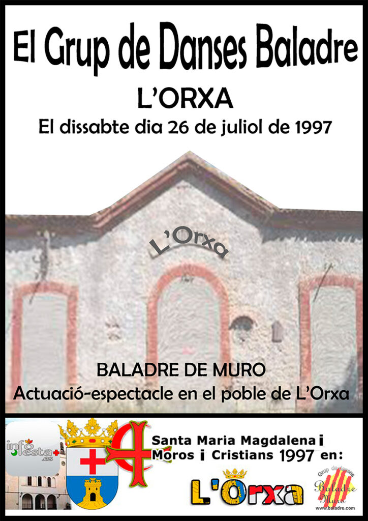 Recepció en Muro del Grup Italià: «La Taccarata», (en la festa del 9 d’Octubre de Muro), van estar amb nosaltres acompanyats pel Grup de Danses Baladre del 8 al 13 octubre del 1998. Preparant-los diverses actuacions en poblacions properes: Gaianes, Banyeres, Alcoi, Onil i Muro.