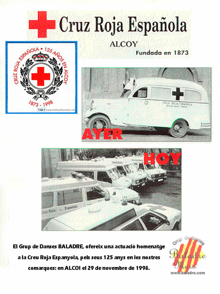 Actuació-estectacle del Grup Baladre, homenatge a la creu roja espanyola, pels seus 125 anys en les nostres comarques; en Alcoi el 29 de novembre de 1998.