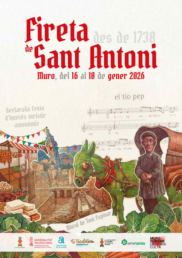 -Dissabte 17 de gener: 12’30h: S’interpretarà l’himne del Tio Pep, amb el Cor Parroquial, el Cor de l’Associació de Pensionistes UDP “Penya el Frare”, la Rondalla del Grup Baladre, la Lira i la Xafigà a la Placeta Molina. A continuació, inauguració oficial del mercat, amb el pregó dels personatges. Tot seguit a les 18’30h. en el Centre Cultural Polivalent de Muro oferim: l’Espectacle conjunt amb el «Grupo de Coros y Danzas Santa Lucía i el Grup de Danses Baladre»
